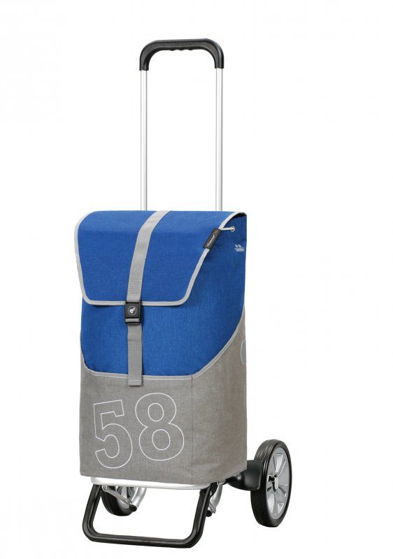 Das sportliche Design der Shopper® Tasche Filip in blau oder rot sorgt nicht nur bei Sportsfreunden für einen Hingucker. Die Nummer 58 im angesagten College Print erinnert an Sporttrikots im Vintage Look. Das Design der Shopper® Tasche Filip ist neu in der Andersen Kollektion. Über einen hellgrauen Gurt lässt sich der Deckel in der Höhe verstellen und passt sich somit der Ladung an. Zusätzlich sorgt ein Kordelzug unter dem Deckel für noch mehr Sicherheit und Stabilität. Im unteren Bereich der Tasche ist eine versteckte Vortasche, die mit einem Reißverschluss zu schließen ist und jede Menge Platz für Schlüssel, Geldbörse oder Notizbuch bietet. Die Haupttasche ist mit einem Fassungsvolumen von 46 Litern groß genug für den Einkauf im Supermarkt oder auf dem Wochenmarkt. Ein 16 Liter Kühlfach hält darüber hinaus kühle Getränke oder Lebensmittel lange Zeit frisch. Auch beim Picknick mit Freunden im Park ist die Shopper® Tasche Filip ein guter Begleiter. Und wieso nicht auch als Sporttasche nutzen? Die Shopper® Tasche Filip verfügt über eine Rucksackfunktion, so dass eine Nutzung der Tasche auch ohne Fahrgestell möglich ist. Die Tasche Filip ist von innen beschichtet und kann somit auch Sportbekleidung gut transportieren. Die Shopper® Tasche Filip ist wasserabweisend und lässt sich bei leichten Verschmutzungen ganz einfach mit einem feuchten Tuch reinigen. Bei Dunkelheit oder schlechtem Wetter sorgen Reflektoren an den Seiten für gute Sichtbarkeit.