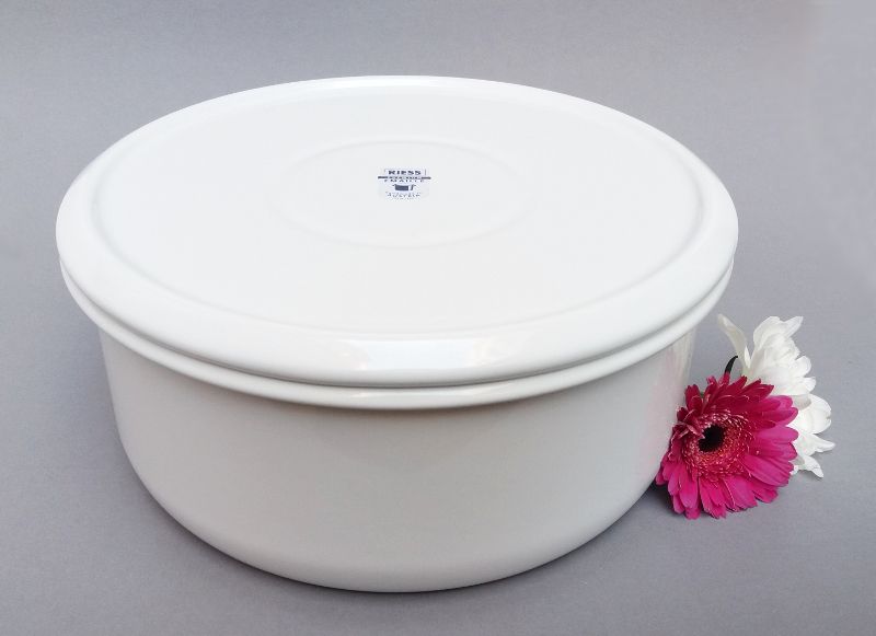 Kekse oder Brot finden in dieser Aufbewahrungsdose mit einem Durchmesser von 24 cm ihren optimalen Aufbewahrungsort und behalten lange ihre Frische und Aromen. Die porenfreie, bakterienhemmende Oberfläche dieser geräumigen Keksdose aus Emaille sorgt für lange Frische und Gaumenfreude, da die Aromen bewahrt bleiben. Auf dem nahtlosen Korpus der Keksdose ist ein rund geschwungener Rand – Bördelrand in der Emaillesprache – dabei wird das Metall gebogen, um einen runden und stabilen Rand zu erzeugen. Darauf sitzt ein Deckel, der dank innen liegendem Falz perfekt auf der Keksdose sitzt.