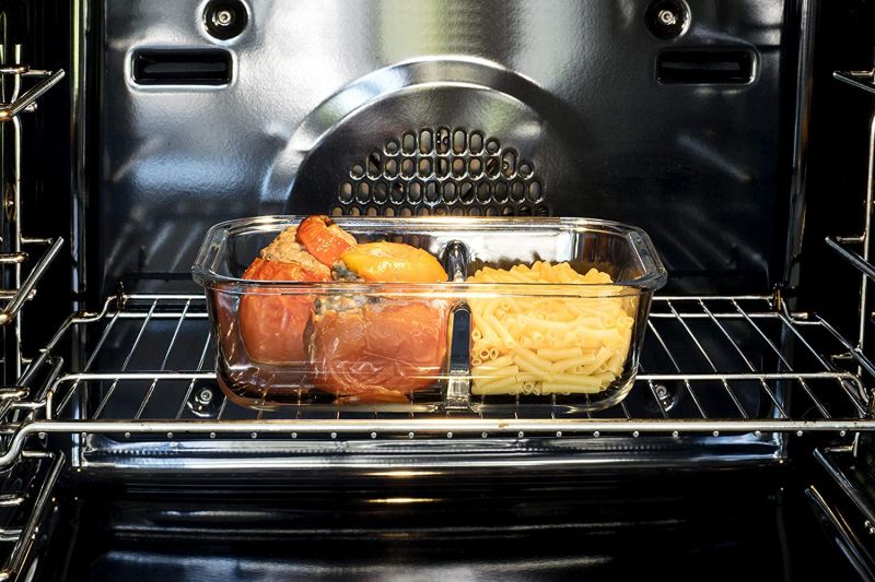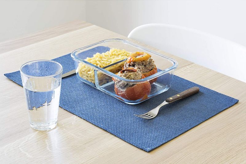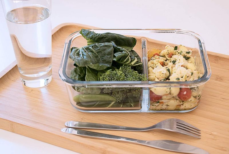 Diese Box wird die Art und Weise revolutionieren, wie Sie Ihre Mahlzeiten aufbewahren und transportieren. Diese Boxen sind in zwei Teile unterteilt, sodass Sie zwei Arten von Lebensmitteln lagern oder transportieren können, ohne sie zu vermischen. Der Deckel schließt dicht, so können Sie auch Gerichte im Glasbehälter transportieren, ohne ein Auslaufen zu befürchten.
