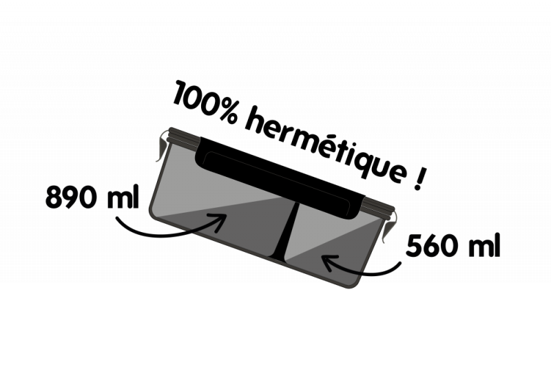 Diese Box wird die Art und Weise revolutionieren, wie Sie Ihre Mahlzeiten aufbewahren und transportieren. Diese Boxen sind in zwei Teile unterteilt, sodass Sie zwei Arten von Lebensmitteln lagern oder transportieren können, ohne sie zu vermischen. Zwischen den beiden Kammern befindet sich eine Silikondichtung, die eine perfekt hermetische Wand ermöglicht. Dieses Produkt ist ideal für ein Gericht in Soße oder um ein Gericht und ein Dessert in einem Behälter zu transportieren!