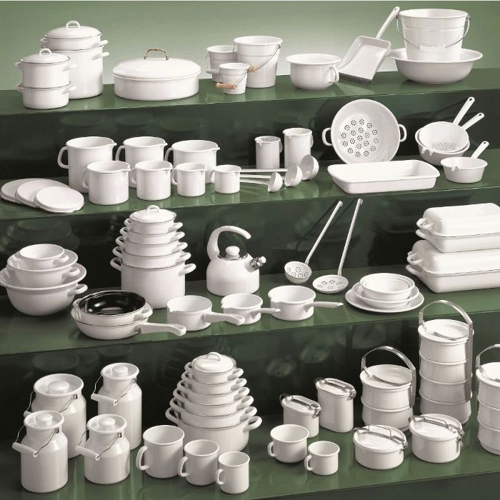 - Emaille Geschirr mit starkem Stahlblechkern