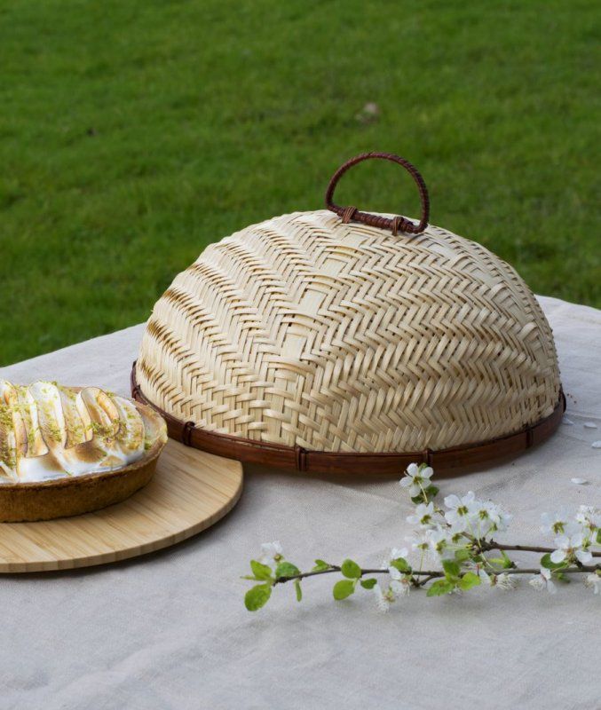 Mit der Abdeckhaube aus geflochtenem Bambus schützen Sie Kuchen, Torten, Gebäck, Brote uvm. vor Insekten und Staub. Die formschöne Haube in natürlichem Look macht sich auch gut beim Frühstück oder Kaffee auf der Terrasse oder im Garten und ist ein Blickfang auf dem Buffet.