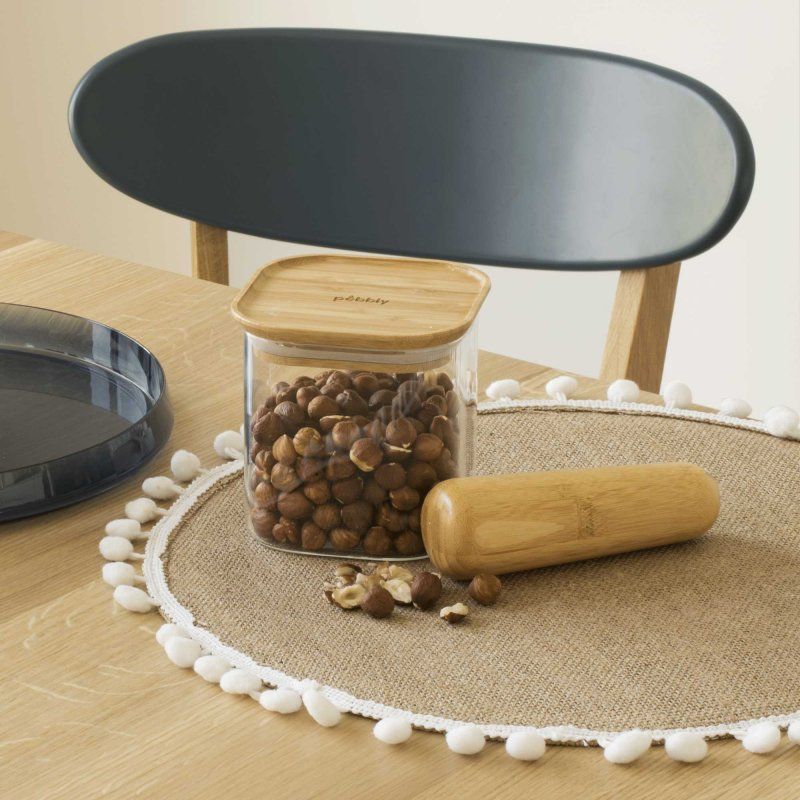 pebbly Vorratsglas quadratisch stapelbar mit Bambusdeckel 800ml