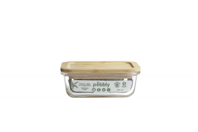 pebbly Vorratsglas rechteckig mit Bambusdeckel 300ml
