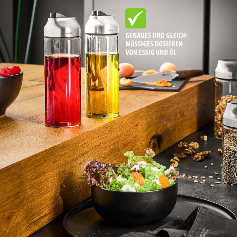 - genaues und gleichmäßiges Dosieren von Essig und Öl