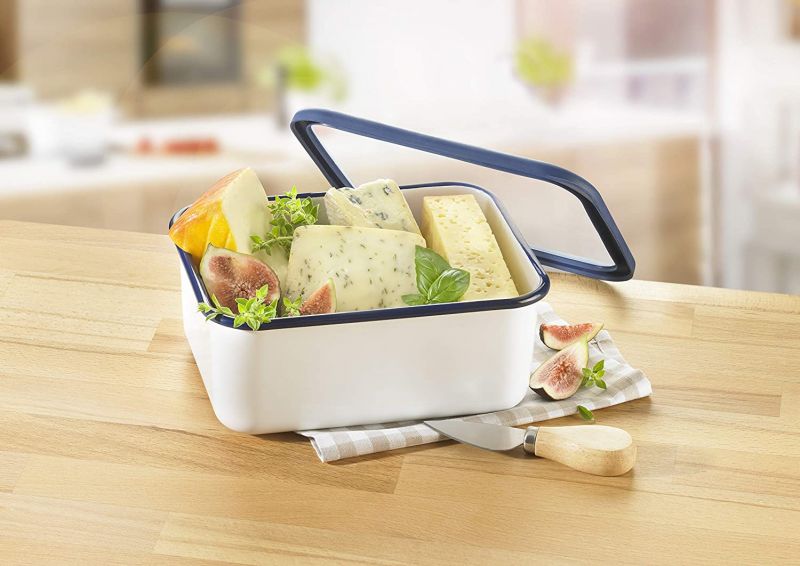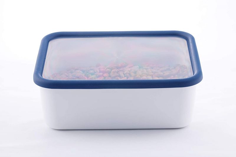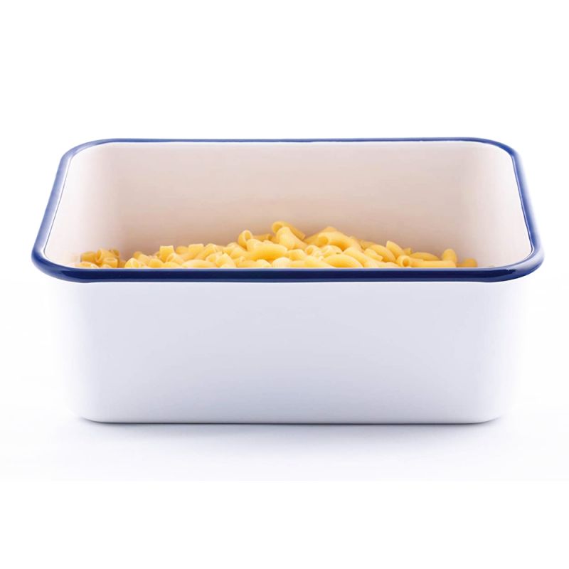 Die Frischhaltedose aus Emaille von Honey Ware eignet sich nicht nur als Vorrats- und Aufbewahrungsdose, sondern kann auch als Backofenform für Auflauf, Lasagne, Gratin und mehr verwendet werden. Zudem ist sie auch für die Aufbewahrung in Gefrierfach oder zum Transportieren von Lebensmitteln geeignet. Dank des passgenauen Deckels lässt sich der Behälter sicher verschließen. Die mühelose Reinigung in der Spülmaschine verspricht einen hohen Komfort.