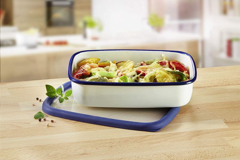 Die Frischhaltedose aus Emaille von Honey Ware eignet sich nicht nur als Vorrats- und Aufbewahrungsdose, sondern kann auch als Backofenform für Auflauf, Lasagne, Gratin und mehr verwendet werden. Zudem ist sie auch für die Aufbewahrung in Gefrierfach oder zum Transportieren von Lebensmitteln geeignet. Dank des passgenauen Deckels lässt sich der Behälter sicher verschließen. Die mühelose Reinigung in der Spülmaschine verspricht einen hohen Komfort.