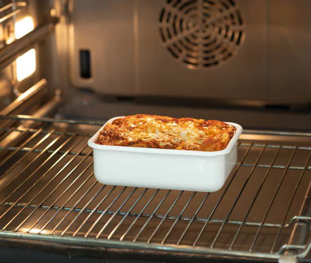 Der Vorratsbehälter ist backofenfest. Mahlzeiten und Lebensmittel können im Backofen gebacken oder erhitzt, und am Herd sanft erwärmt werden.