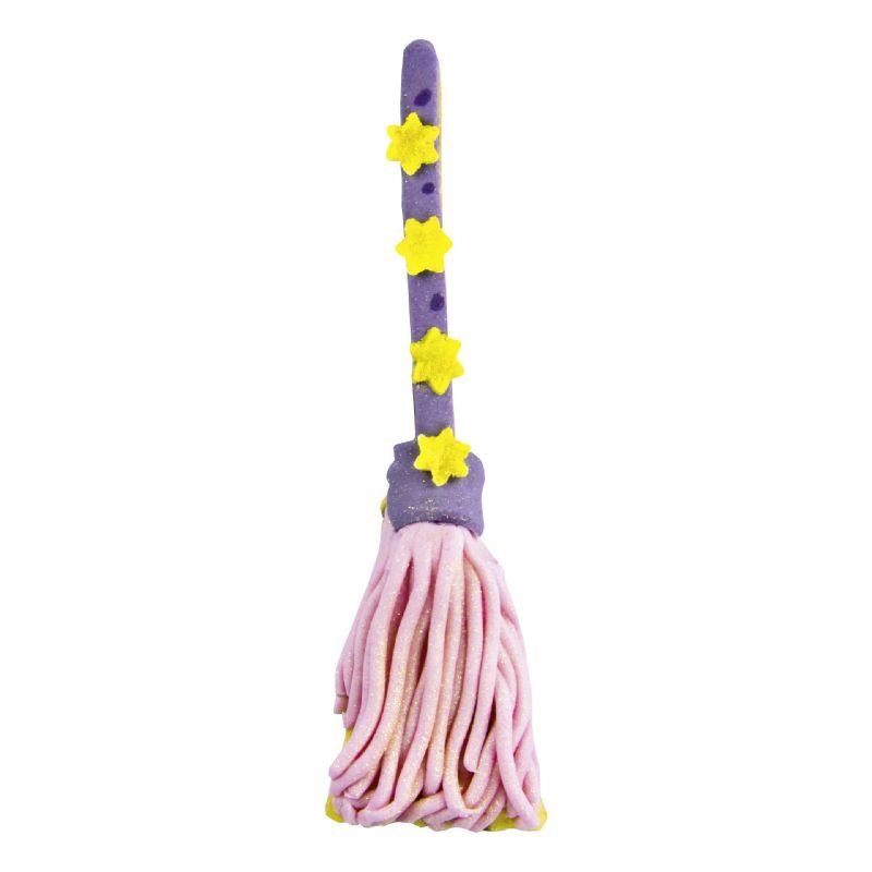 Eine richtige Hexe hat natürlich immer ihr Fluggerät dabei: einen Besen! Auf dem Besen reitet sie dann vom Backblech zur Keksdose!