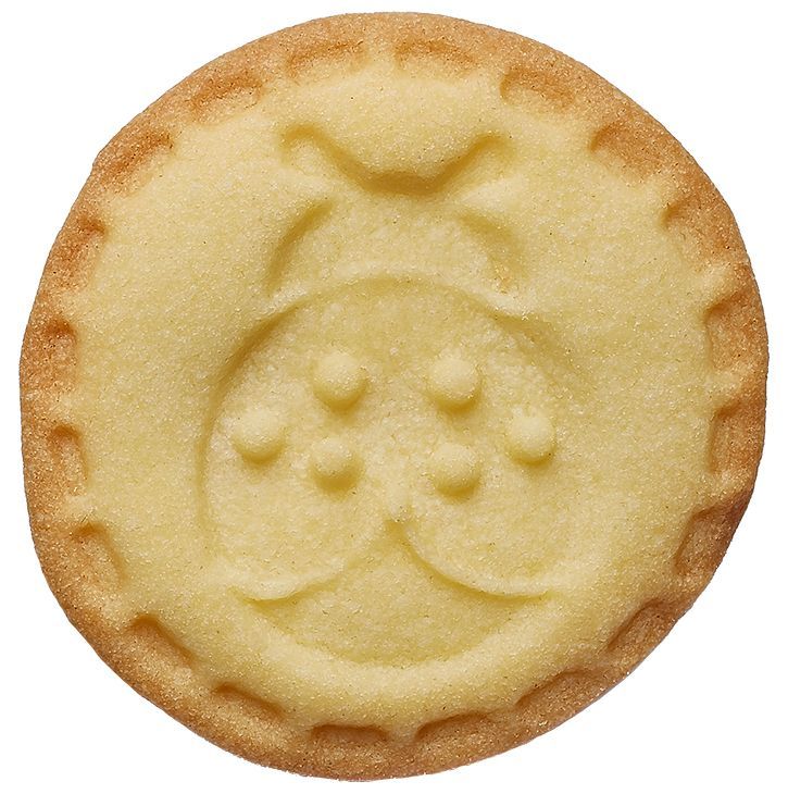 Den Teig etwas dicker als normalerweise ausrollen. Anschließend mit einer runden Ausstechform, ideal sind 6 cm Durchmesser, ausstechen und losstempeln. Für die perfekte optische Wirkung des Plätzchen−Stempels ist die Teigwahl wichtig. Vielleicht mögen Sie ja unser beigefügtes Keksrezept − es ist besonders gut für Stempelkekse geeignet.