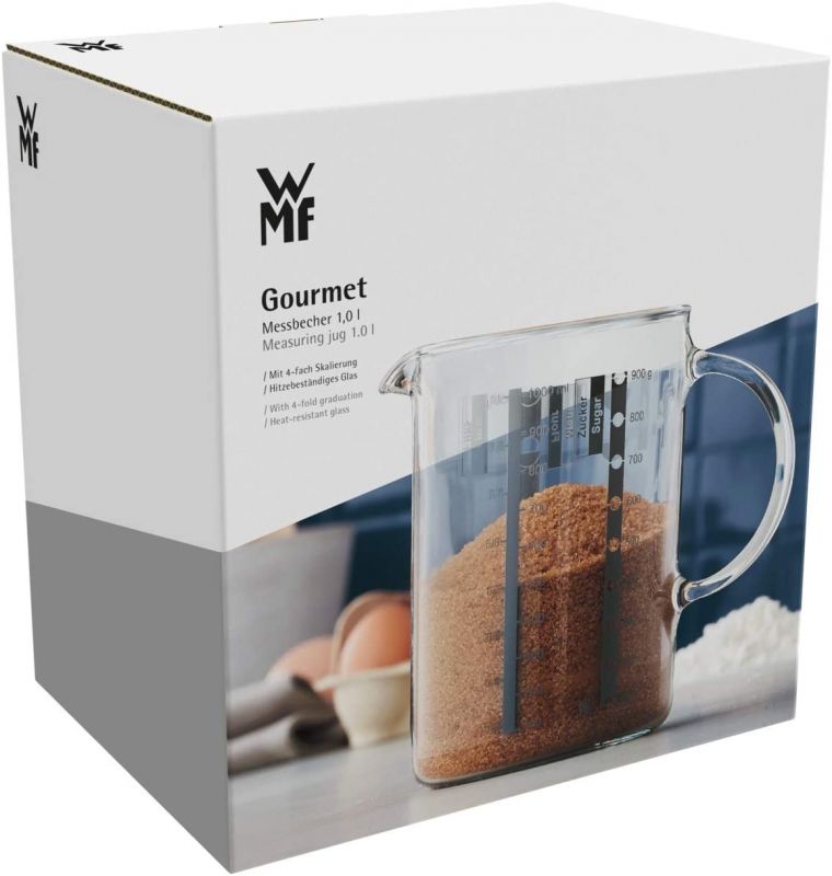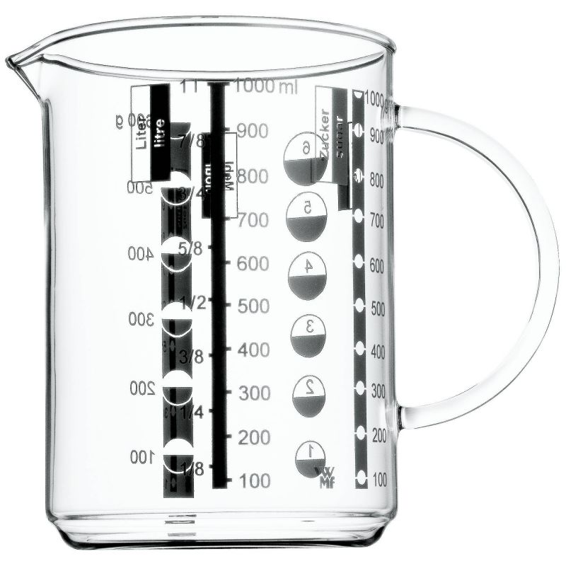 Kleinstmengen genau ablesbar. Angabe der Messskalen in Liter, Milliliter, Tassen und Gramm.