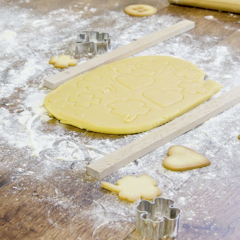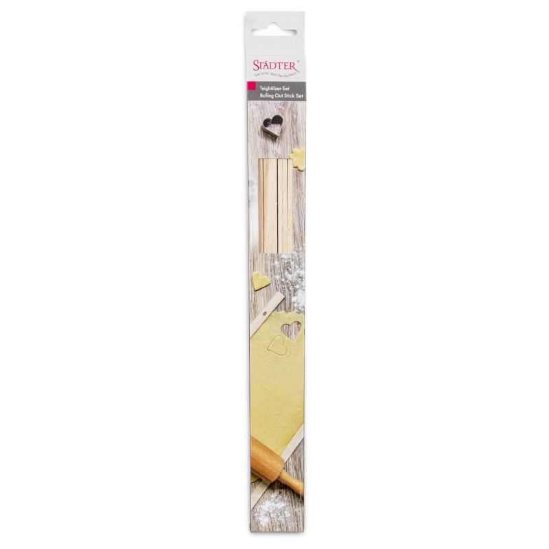 Wenn Ihr Teig immer die gleiche Höhe oder Stärke haben soll, wird Sie dieses Teighölzer-Set erfreuen. Mit den Hölzern erzielen Sie eine gleichmäßige Teigdicke beim Ausrollen, und das Gebäck hat immer die gleiche Stärke.