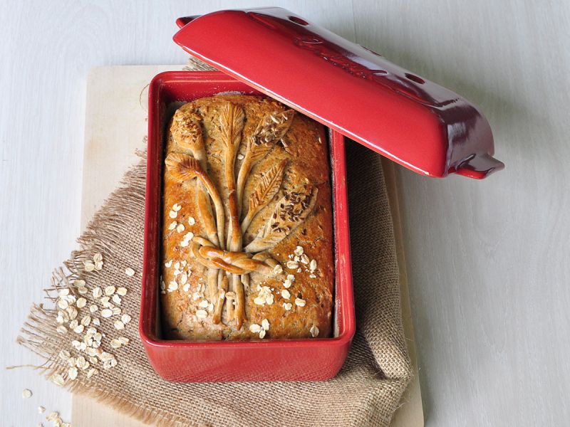 Die feuerfeste Keramik und die Löcher im Deckel und an der Basis sorgen für den richtigen Feuchtigkeitsgehalt während der Backzeit: Die Kruste wird knusprig und die Krume weich. Die Form ermöglicht eine Vielfalt von Broten mit verschiedenstem Mehl (Kastanien-, Leinsamen-, Reis-, usw.) sowie Glutenfreiem Mehl.