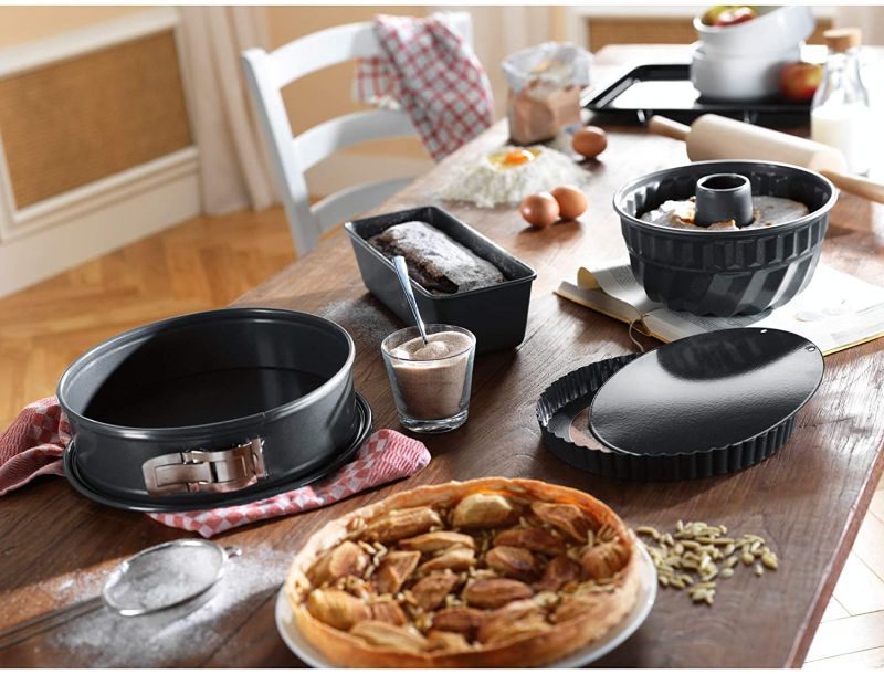 Edles Design, innovative Materialien und Ausstattungsmerkmale für höchste Ansprüche – schöner und ergebnisorientierter kann Backen nicht sein. Die Backformen der Kollektion KAISER La Forme Plus verfügen über eine 2-fach keramisch verstärkte und damit äußerst langlebige Antihaftbeschichtung mit dem Namen Kairamic®. So gelingen Ihnen alle Kuchenrezepte einfach perfekt, denn nichts backt mehr an. Die glashart emaillierten Böden der Springformen sind extrem schnitt- und kratzfest. Dadurch sehen die La Forme Plus Backformen auch nach Jahren aus wie am ersten Tag. Da alle Springform-Böden zudem auslaufsicher sind, geht kein Teig mehr daneben und Ihr Ofen bleibt sauber. Und mit dem Safe-Click-Verschluss lässt sich die Springform vollständig öffnen, leicht zerlegen und einfach reinigen. La Forme Plus Backformen werden in Deutschland gefertigt und überzeugen mit ihrer extraschweren, robusten Qualität, auf die KAISER zehn Jahren Garantie gewährt.