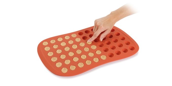 Tescoma Delicia Silikon Backform für NüsschenHervorragend für die Zubereitung von hausgemachten Plätzchen in Form von Nüsschen. Kein Anbacken des Backgutes in der Backform, schnelles und gleichmäßiges Backen in der Backform, das gebackene Backgut kann leicht ausgekippt werden Aus erstklassigem hitzebeständigem Silikon hergestellt, bis 230 °C hitzebeständig. Die Silikon-Backformen können gut gereinigt werden, es ist hinreichend, sie nach dem Gebrauch nur abzuspülen, bzw. im Geschirrspüler zu spülen, sie sind perfekt platzsparend. Für Gas-, Elektro- sowie Heißluftofen geeignet. Gebrauchsanleitung mit den Backrezepten in der Verpackung beiliegend. 3 Jahre Garantie.