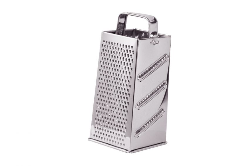die praktische und vielseitige Vierkantreibe mit 4 Seiten für verschiedene Aufgaben: Reibe grob und fein, Kronenreibe und Scheibenreibe in einem Teil, standfest und stabil.
