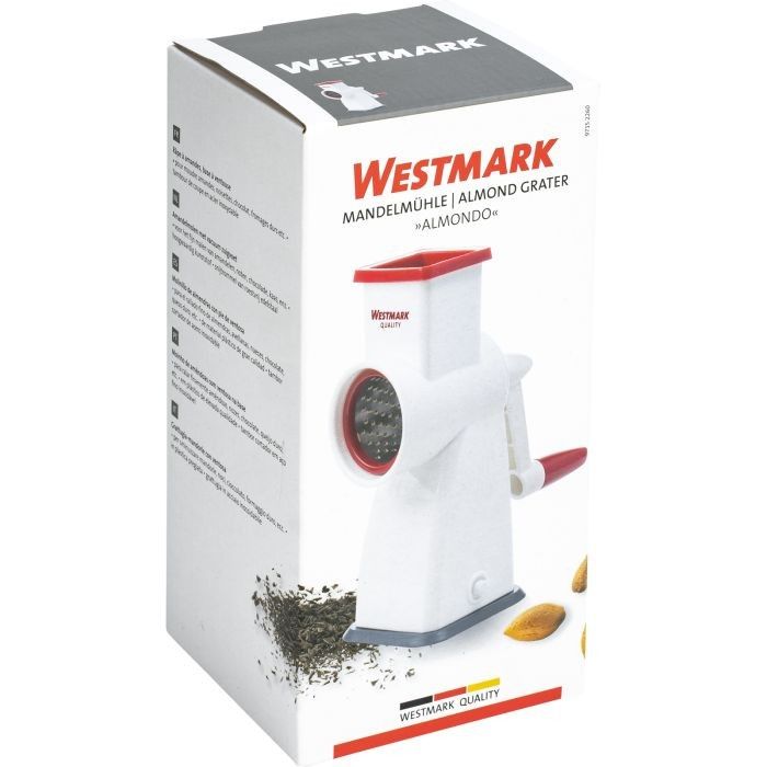 Mit dieser handlichen Mandelmühle mahlen Sie die verschiedensten Nuss-Sorten sowie Schokolade und Parmesankäse schnell und einfach ganz fein. Das robuste Mahlwerk ermöglicht ein müheloses Zerkleinern und die große Öffnung mit Füllstößel ein leichtes Befüllen und eine sichere Handhabung. Dank des starken Saugfußes hat die Mühle beim Drehen einen festen Stand.