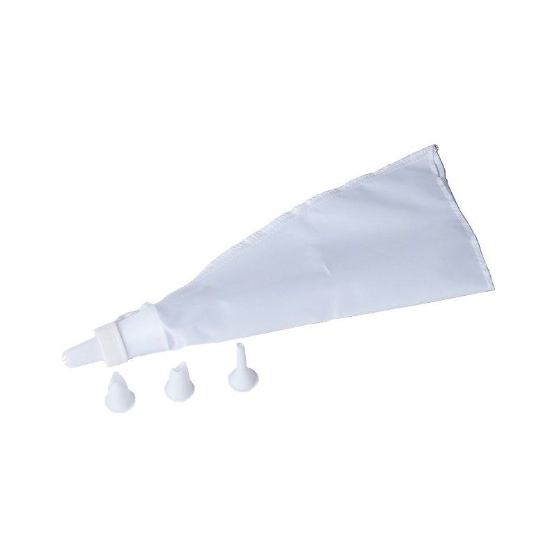 Günstiges Spritzbeutelset mit 4 Tüllen aus Kunststoff und Spritzbeutel aus stabilem Nylongewebe