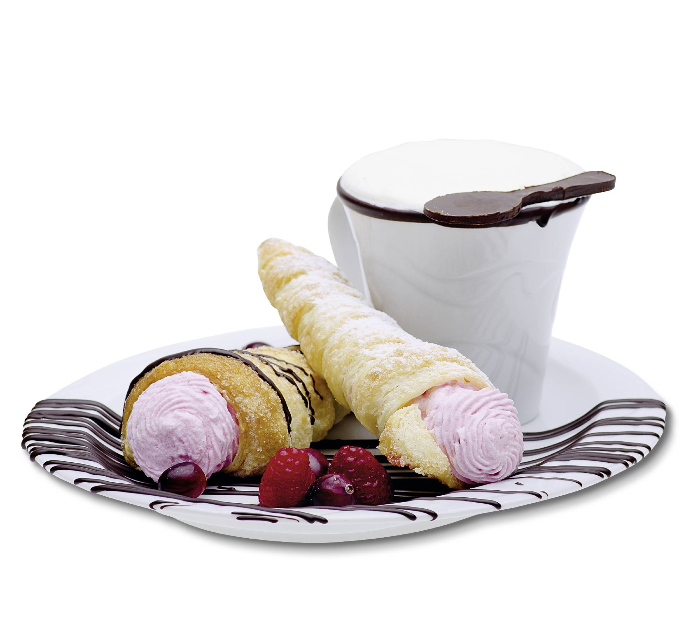 Für konische Desserts bietet sich diese Sahnerolle an.