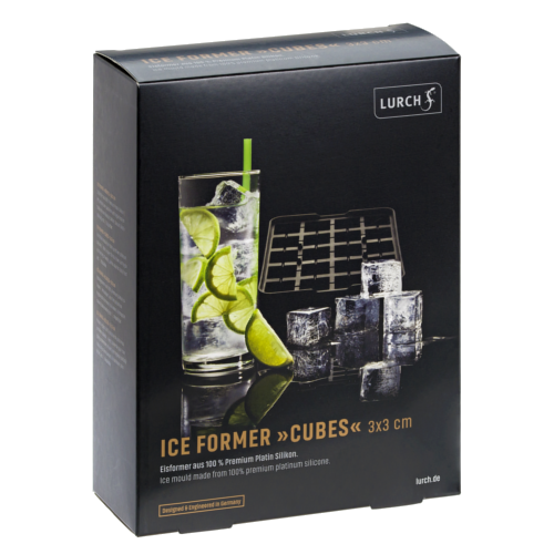 ICE FORMER „Cubes“Mit den Eisformern aus 100 % Premium-Silikon lassen sich nicht nur klare Eiswürfel herstellen. Der transparente Deckel sorgt für ein sauberes und hygienisches Einfrieren von Wasser, Säften, Saucen, Babynahrung u.a. Die „Cubes“ gibt es in den Größen 5 x 5 cm, 4 x 4 cm, 3 x 3cm, 2 x 2 cm zu kaufen.