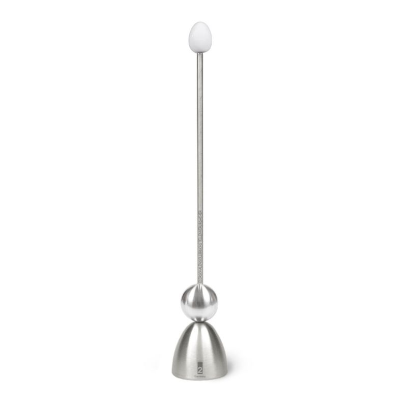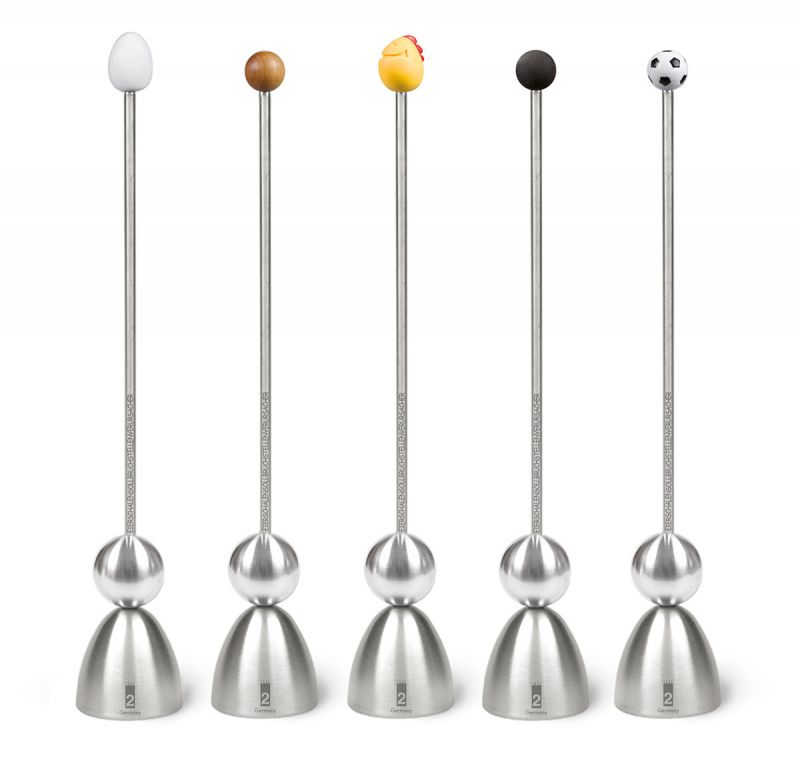 Die Kappe wird einfach auf das weich- oder hartgekochte Ei gesetzt, und die Kugel von oben den Stab entlang fallen gelassen. Mit einem “Clack” erhält die Eierschale eine ringförmige Bruchstelle, an der der Eikopf bequem und sauber entfernt werden kann.