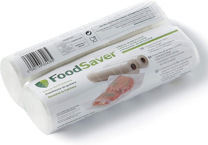 FoodSaver®-Beutel und -Rollen können eingefroren und im Wasserbad oder in der Mikrowelle erhitzt werden. Sie bestehen aus einem belastbaren, fünflagigen Material mit speziellen Kanälen, die das vollständige Entfernen der Luft ermöglichen. So bleibt keine Luft in Hohlräumen um die Lebensmittel zurück, welche zu Gefrierbrand und Frischeverlust führt. Alle Beutel und Rollen von FoodSaver® sind BPA-frei und deshalb sicher für die ganze Familie.