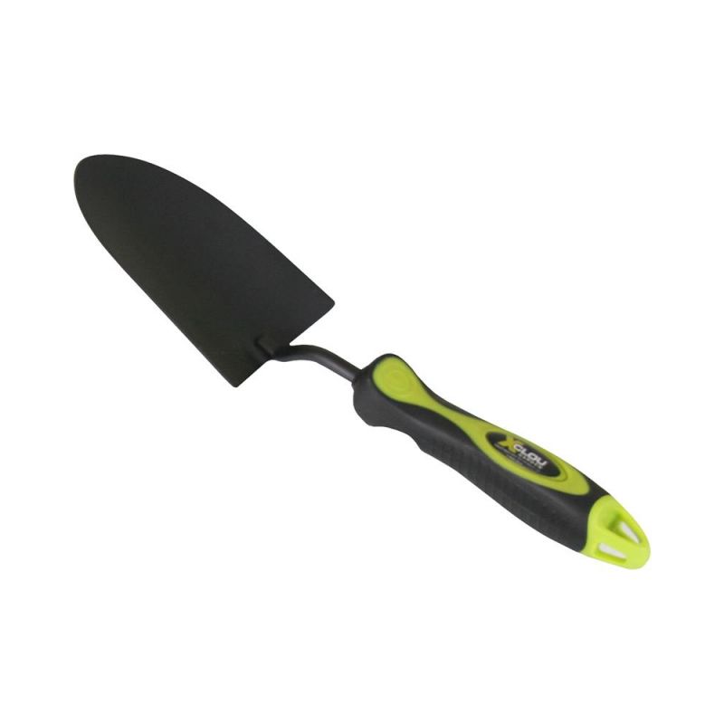 Blumenkelle Stahl pulverbeschichtet, stabile Ausführung, mit formgerechtem Handgriff aus TPE, schwarz/grün ca. 33 x 5 x 8 cm