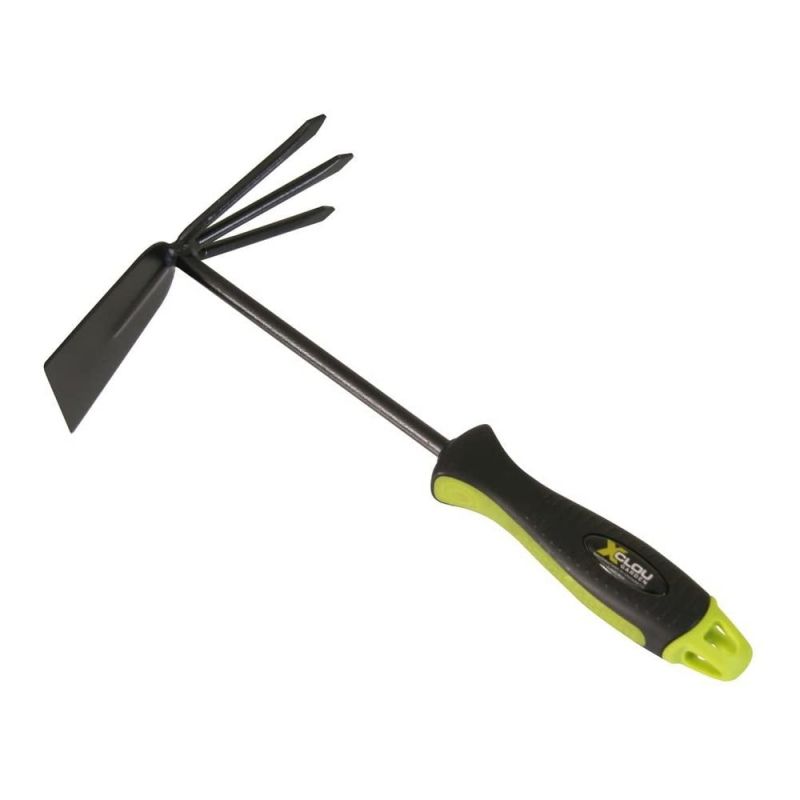 Doppelhäckchen Stahl pulverbeschichtet, mit formgerechtem Handgriff aus TPE, 3 Zinken, schwarz/grün ca. 33 x 8,5 x 19 cm