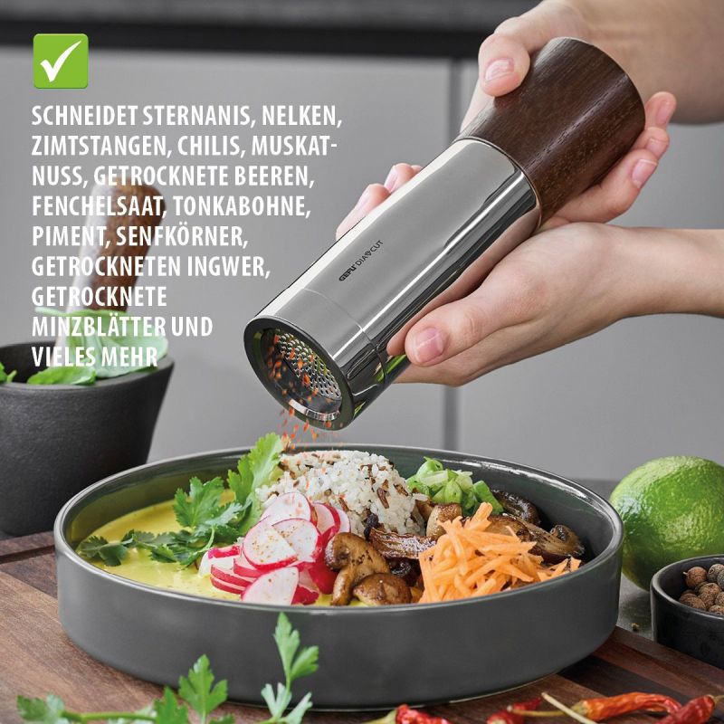 Der SPICE-CUT zerkleinert Gewürze, Kräuter und Samen präzise und mühelos. Sein extrascharfes DIACUT Edelstahl-Schneidwerk mit DIAMOND LASER CUT Technologie sorgt für gleichmäßige Schnittergebnisse und volles Aroma bei jedem Einsatz.
