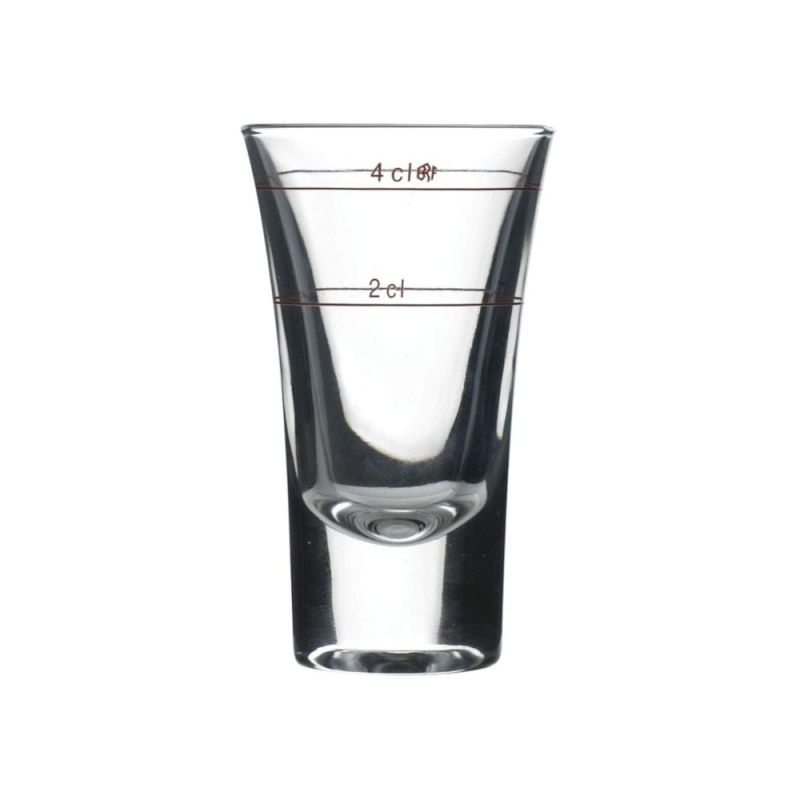 klassisches Schnapsglas / Shotglas mit Eichstrichen bei 2cl und 4cl