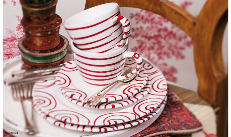 Knalliges Rot trifft strahlendes Weiß: Wer es gerne farbenfroh mag, wird dieses Design lieben. Und ganz nebenbei lässt Rotgeflammt auch noch das Herz eines jeden Österreichs höher schlagen. Jedes Stück wird von Hand gefertigt und ist ein echtes Unikat. Gmundner Keramik eignet sich zudem für die Spülmaschine und Mikrowelle.
