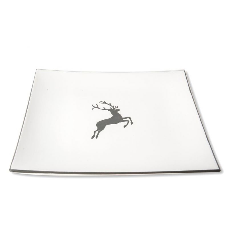 Gmundner Keramik Grauer Hirsch Speiseteller eckig 26x26cm