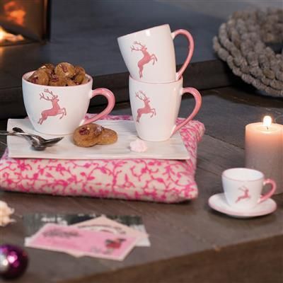 Verspielt und trotzdem traditionell, so zeigt sich der Rosa Hirsch im kleineren Sortiment. Von Tassen, zur Müslischale, zum Dessertteller bis hin zur Serviette findet man alles was das Herz begehrt in Rosa. Jedes Stück wird von Hand gefertigt und ist ein echtes Unikat. Gmundner Keramik eignet sich zudem für die Spülmaschine und Mikrowelle.