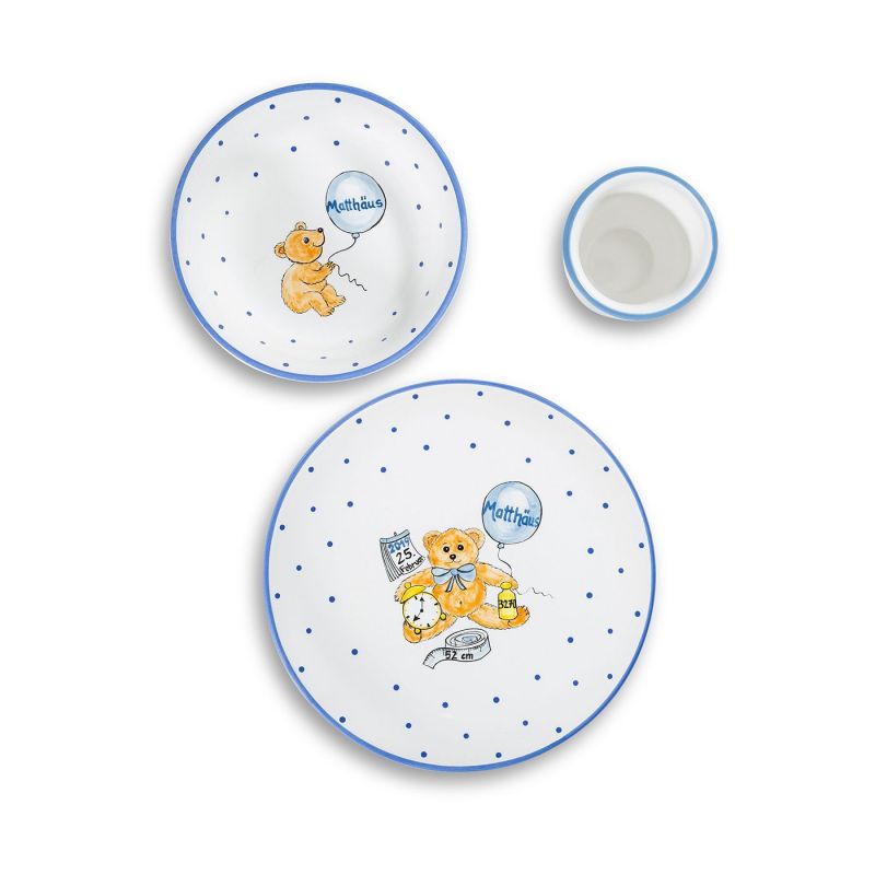 "Mein erstes Gmundner" gibt es auch für die Kleinsten ein handbemaltes Set im Gmundner Keramik Design. Das 3-teilige Set (bestehend aus Teller, Schüssel und Trinkbecher) ist in den Farben Rosa und Blau erhältlich.