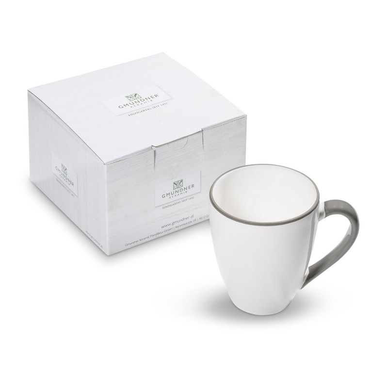 Gmundner Keramik Grauer Rand Frühstücksbecher Max (0,3L) im Geschenkkarton