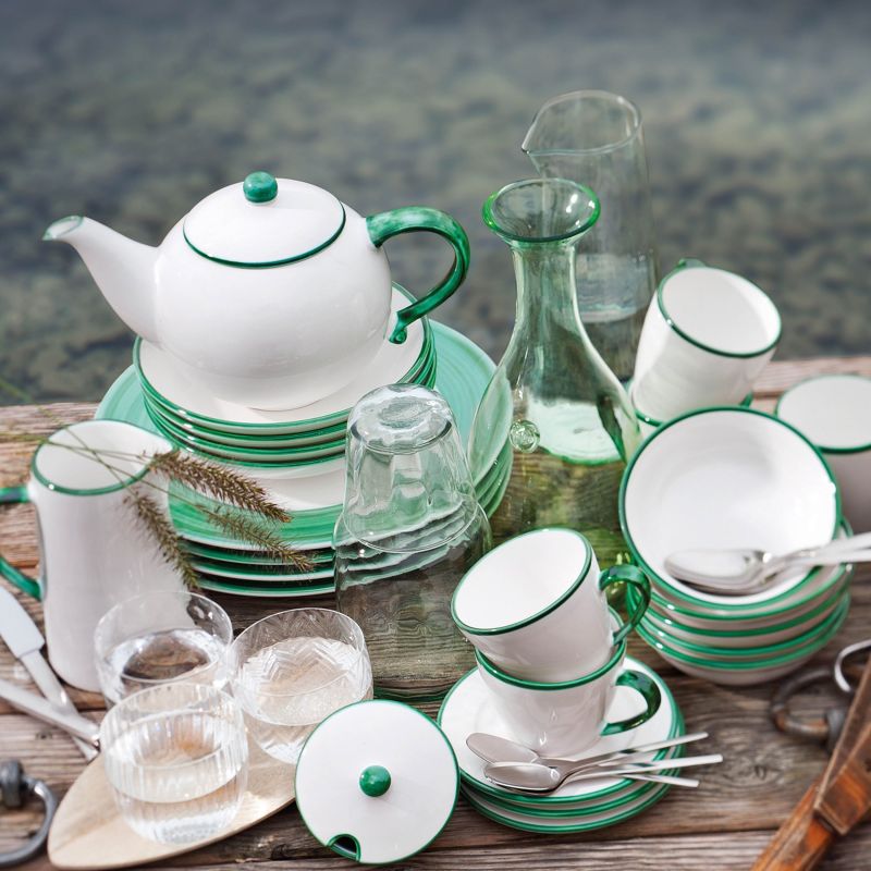 Fein und elegant, so zeigt sich das Design Grüner Rand. Alleine purisitisch und in Kombination mit anderen Designs auflockernd und beruhigend, zählt dieses Dekor zu den Alles-Könnern. Jedes Stück wird von Hand gefertigt und ist ein echtes Unikat. Gmundner Keramik eignet sich zudem für die Spülmaschine und Mikrowelle.
