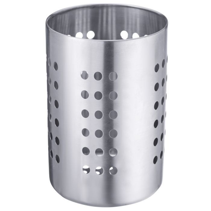 Dieser robuste Besteckkorb aus rostfreiem Edelstahl eignet sich hervorragend zum praktischen Aufbewahren von Besteck, Küchenutensilien wie Kochlöffel, Kelle und Wender oder bereits in Servietten eingewickeltem Besteck. Auch als Abtropf-Behältnis/Spülkorb ist er ideal, denn durch die Lochung im Becher kann Spülwasser von noch nassen Utensilien nach dem Reinigen abfließen. Durch seine äußerst stabile Qualität ist er besonders für den täglichen Einsatz in der Gastronomie geeignet.