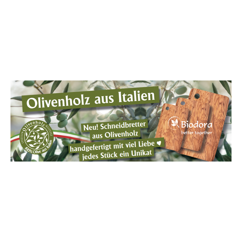 Die Biodora Olivenholzprodukte sind naturbelassen und unbehandelt. Bei Bedarf können diese mit Olivenöl gepflegt werden.