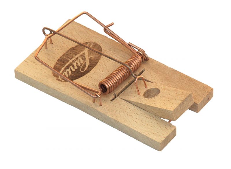 Klassische Rattenfalle aus Holz mit Schlagbügel