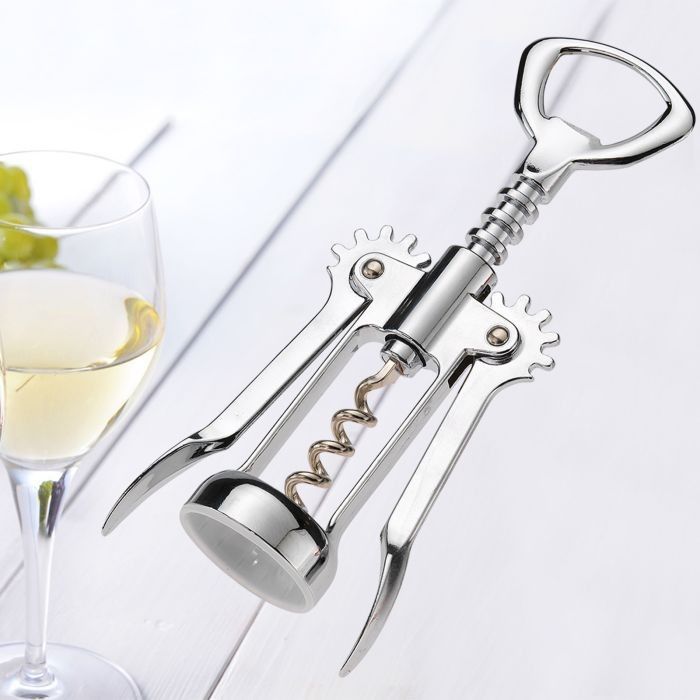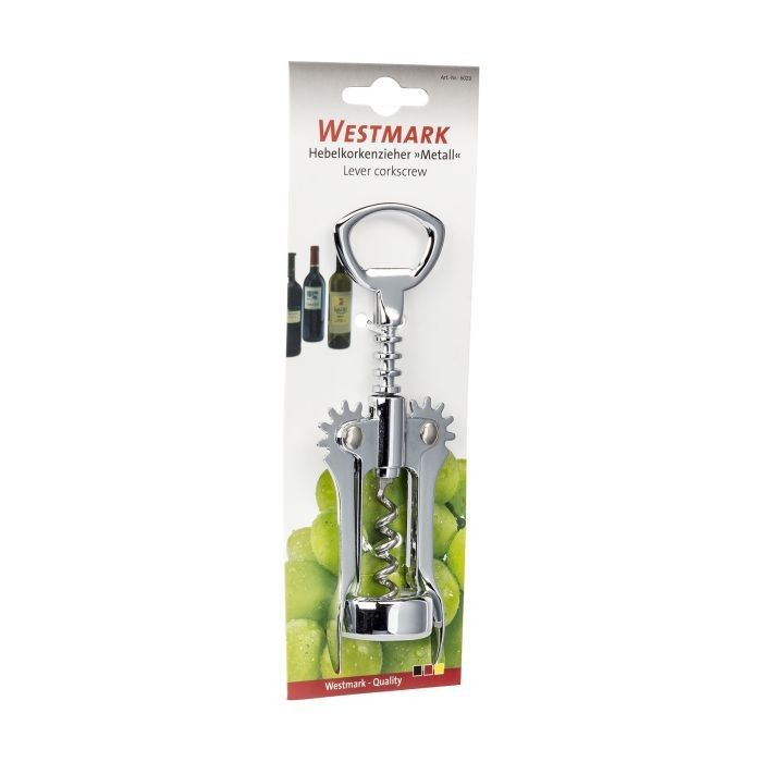 Dieser klassische Hebelkorkenzieher mit Wendel und Seele ist der ideale Helfer beim Öffnen von Flaschen mit Korkverschluss und durch seinen Integrierten Kapselheber auch für Kapselverschlüsse geeignet. Drehen sie den spindelförmigen Wendel in den Korken. Dabei schwenken die Hebelarme nach oben. Jetzt einfach die Arme herunterdrücken und die Flasche ist entkorkt. Garantiert hohe Langlebigkeit durch hochwertigen, verchromten Stahl.