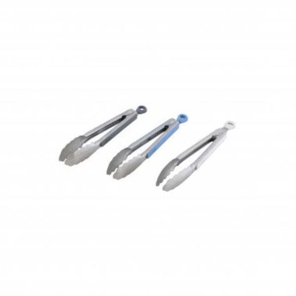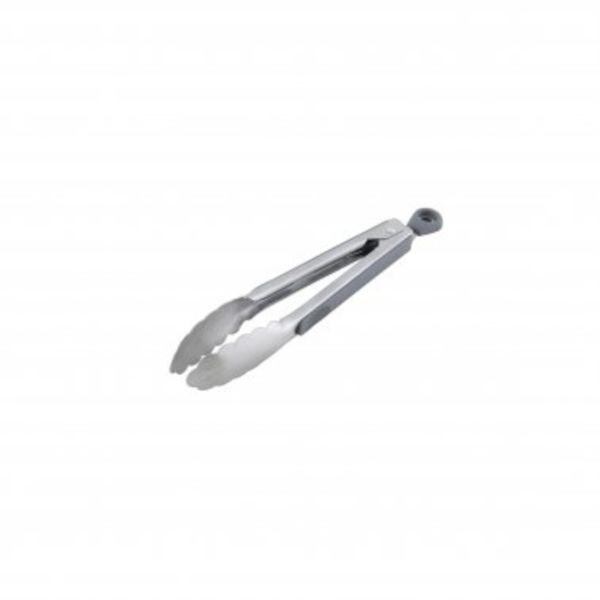 Küchen- und Grillzange aus Edelstahl mit rutschfesten Softgriffen und Aufhängeösen,