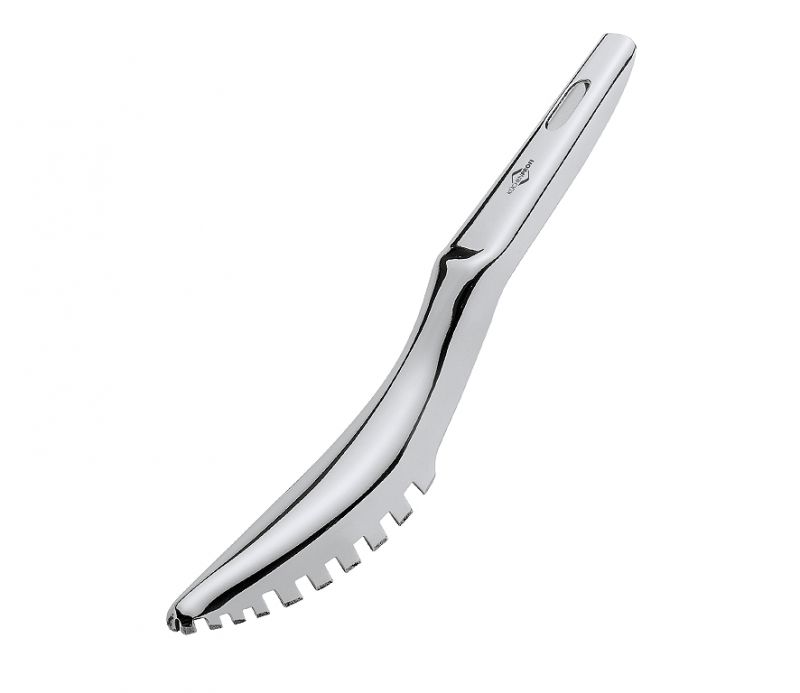 Ein im Ganzen zubereiteter Lachs ist eine feine Mahlzeit. Oder soll es lieber eine geschmorte Dorade mit Chili-Tomatensauce sein? In jedem Fall müssen die Schuppen herunter. Das funktioniert am besten vor dem Ausnehmen des Fisches. Und mit dem Fischentschupper von KÜCHENPROFI. Der Schaber entfernt Fischschuppen jeder Größe – rasch und gründlich. Das Abziehen der Haut können Sie sich sparen. Der Küchenhelfer liegt gut in der Hand und ist so geformt, dass Sie auch schwer zugängliche Stellen erreichen, ohne die Fischhaut zu verletzen.