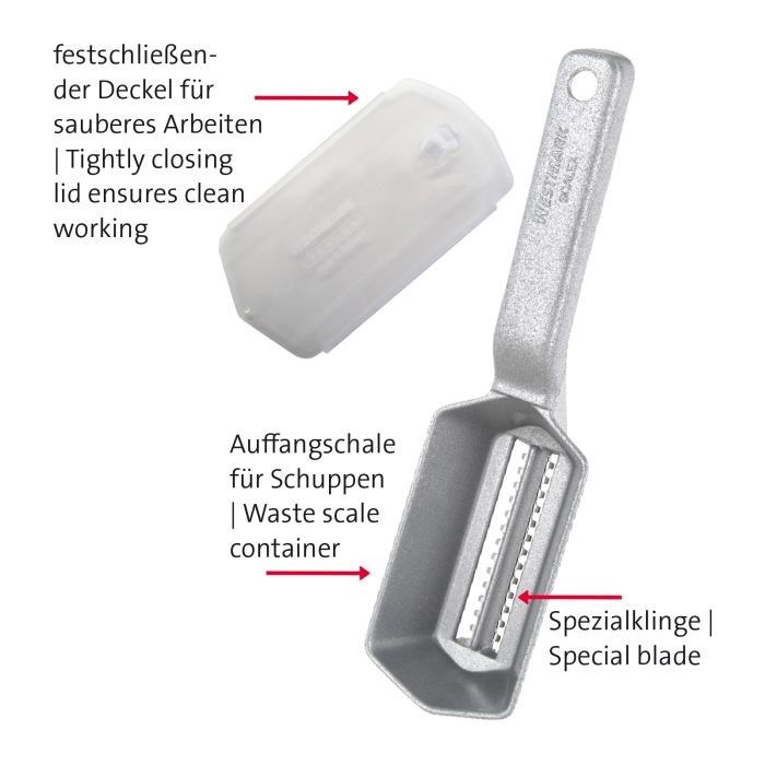 • breite Spezialklinge für schnelles und effizientes Entschuppen