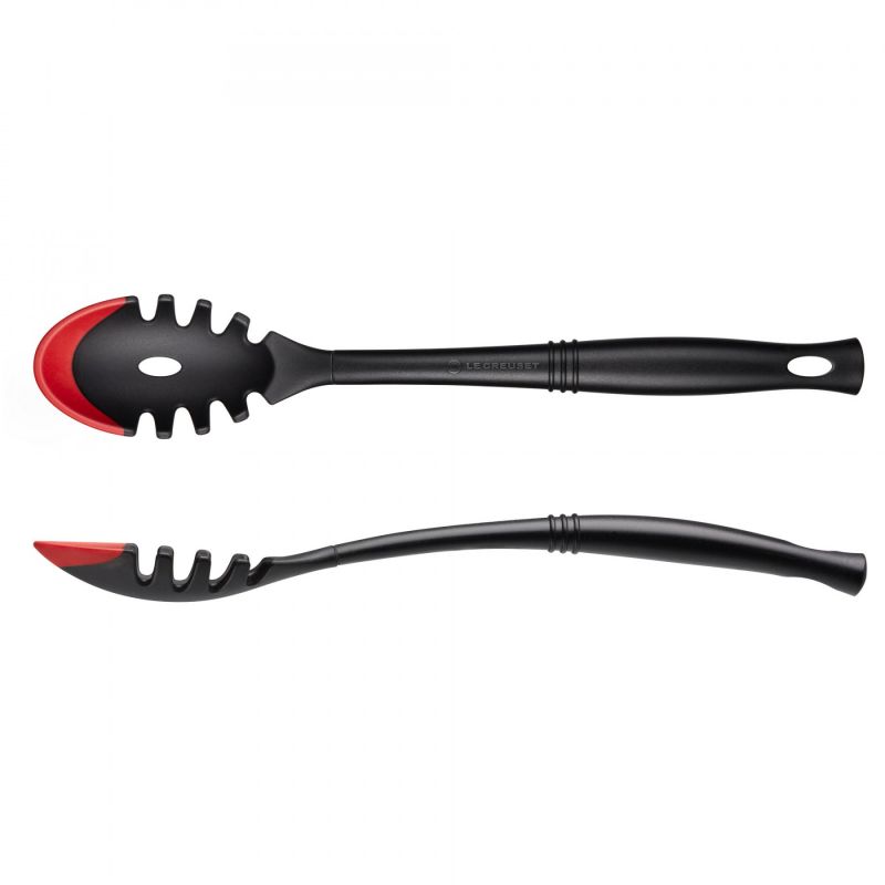 Mit dem neuen Pastalöffel ergänzt Le Creuset die bestehende Silikon-Kunststoff-Serie im Bereich Küchen-Accessoires. Ideal zum Portionieren von allen Pastasorten – ob kurz oder lang. Der Pastalöffel eignet sich ideal für beschichtetes Kochgeschirr. Der hochleistungsfähige, glasfaserverstärkte Kunststoff garantiert professionelle Stabilität und Festigkeit. Der farbig abgesetzte Einsatz aus hochwertigem Silikon sorgt für angenehme Flexibilität.