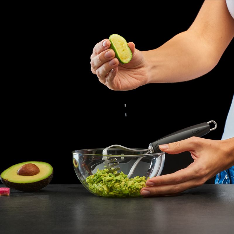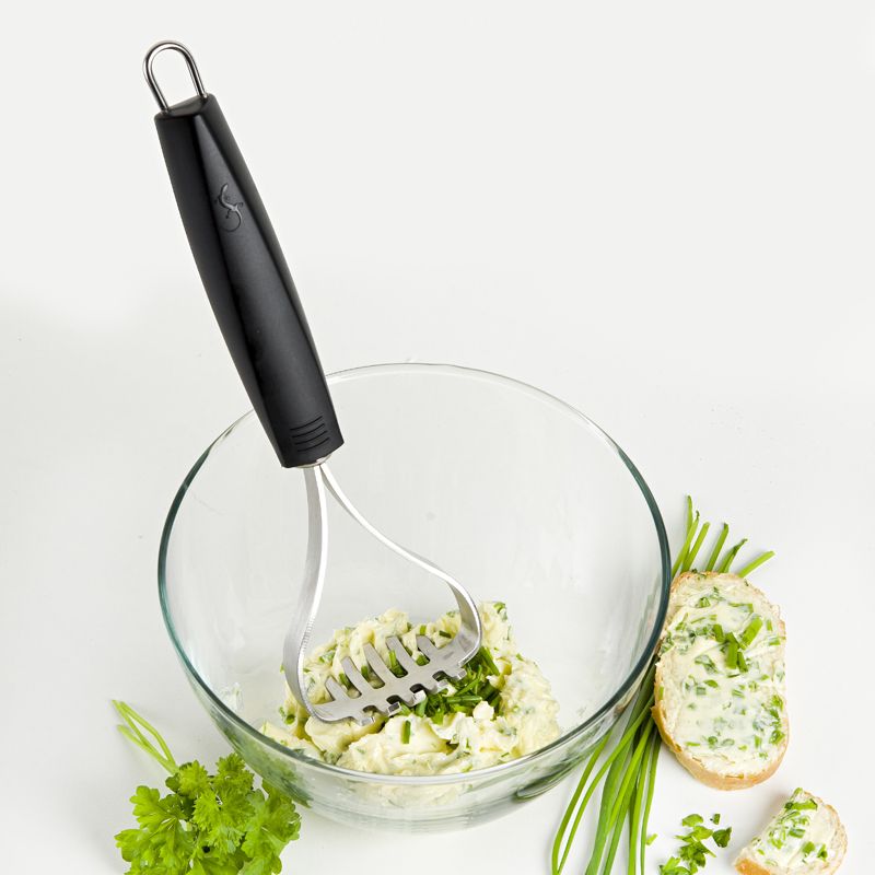 Elegant und ZeitlosMinistampfer zum Zerdrücken und Vermengen von weichem Gemüse und Obst. Ideal zur Herstellung von Guacamole, Humus, Babynahrung, Breis und Dips.
