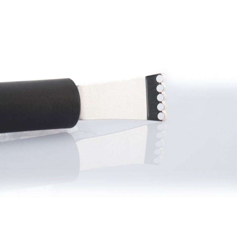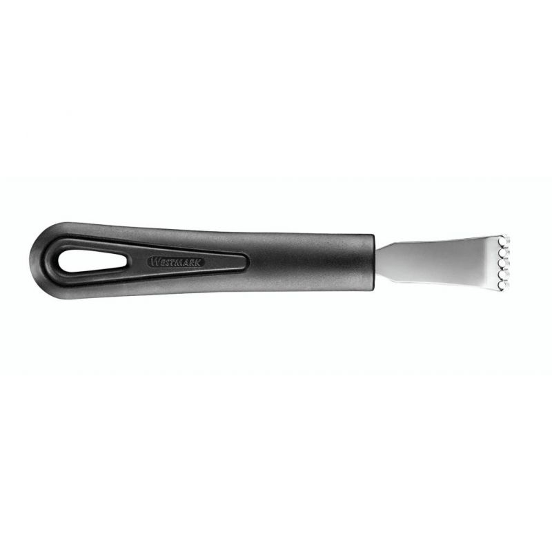 • Fadenschaber schneidet feine Streifen aus Fruchtschalen, Schokolade etc.