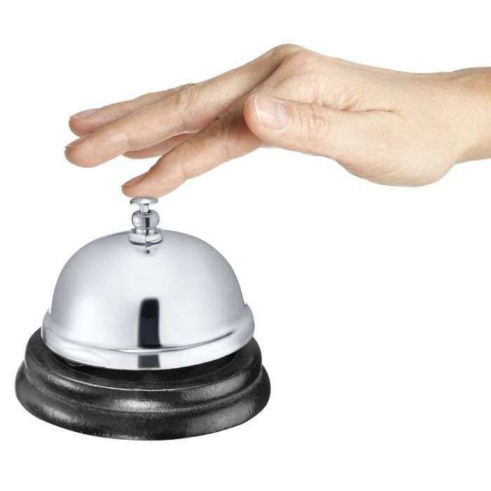 Die edle Tischglocke ist ideal für die Gastronomie und das Hotelwesen: Sie schmückt Theken und Tische in Restaurants, Bars, Cafés und Hotels und eignet sich ebenfalls als Empfangsglocke für Arztpraxen und Co. Sie ist ein zeitloser Klassiker und besticht durch ihre edle Optik und den klaren, lauten Klang.