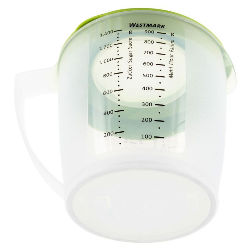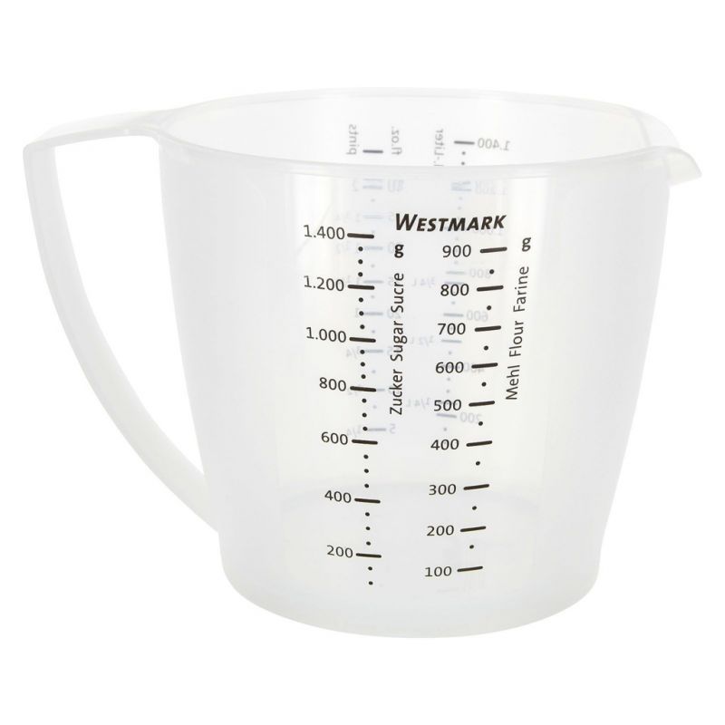 Viel Funktion in einemZusätzlich zur Rührbecherfunktion mit Spritzschutz hat dieser praktische Helfer eine Messskala in deutsch, englisch und französisch. Maßeinteilung sind ml, Liter und Gramm. Schön, wenn man viele Funktionen in einem Helfer anbieten kann. Denn diese kommen häufig zum Einsatz, erleichtern die Arbeit und sparen Zeit und Platz. Ganz nach dem Westmark - Motto: Westmark Mach's einfach!