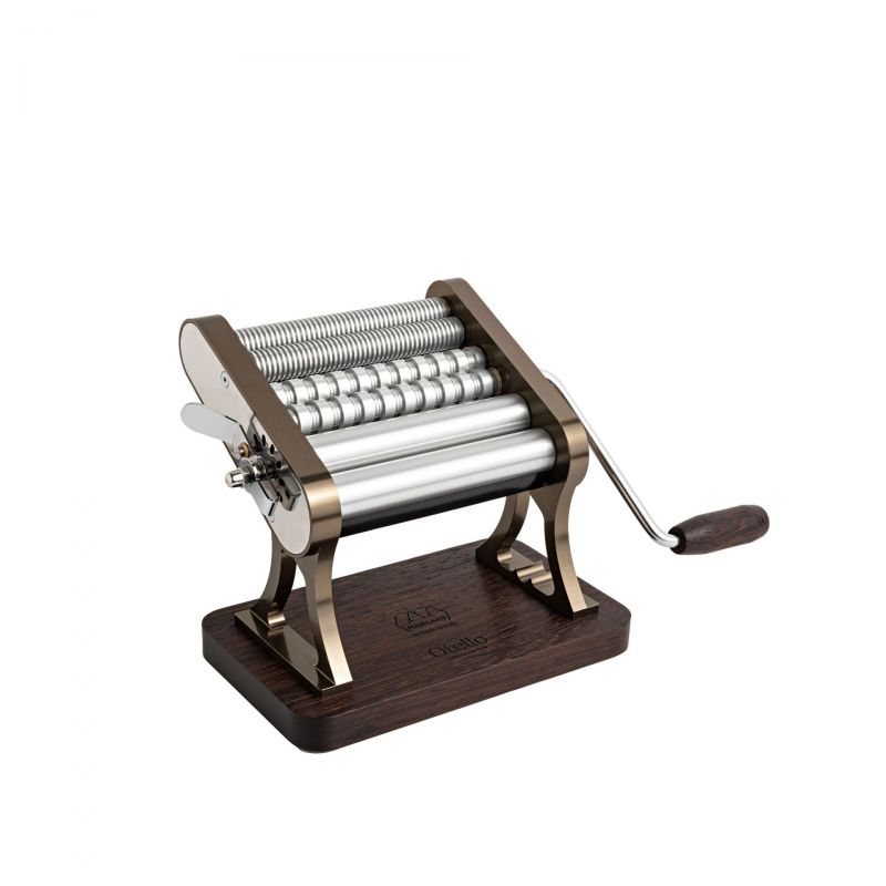 Otello brachte bereits in seinem ursprünglichen Design einige innovative technische Lösungen, wie z.B. den Regler, um die Stärke des Teigblatts jetzt auf 7 Positionen zu verändern. Die moderne Version der Maschine beinhaltet die Marcato-Technologien, die bei den anderen Modellen der Serie üblich sind: die Walzen aus eloxierter Aluminiumlegierung, die Kämme aus hochbeständigem Polymerharz.