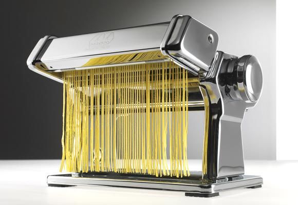 Das Zubehör Capellini ist eines der 13 Zubehörteile für frische Nudeln, die mit der Nudelmaschine Atlas 150 kompatibel sind. Sie können es mit der dazugehörigen Handkurbel von Hand oder mit dem Motor Pastadrive verwenden.